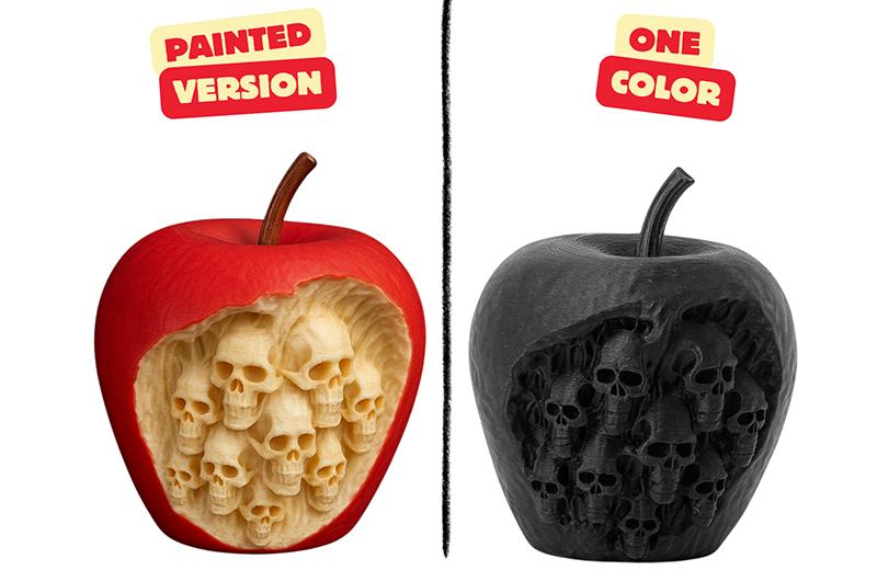 3D打印苹果雕刻骷髅头手板模型